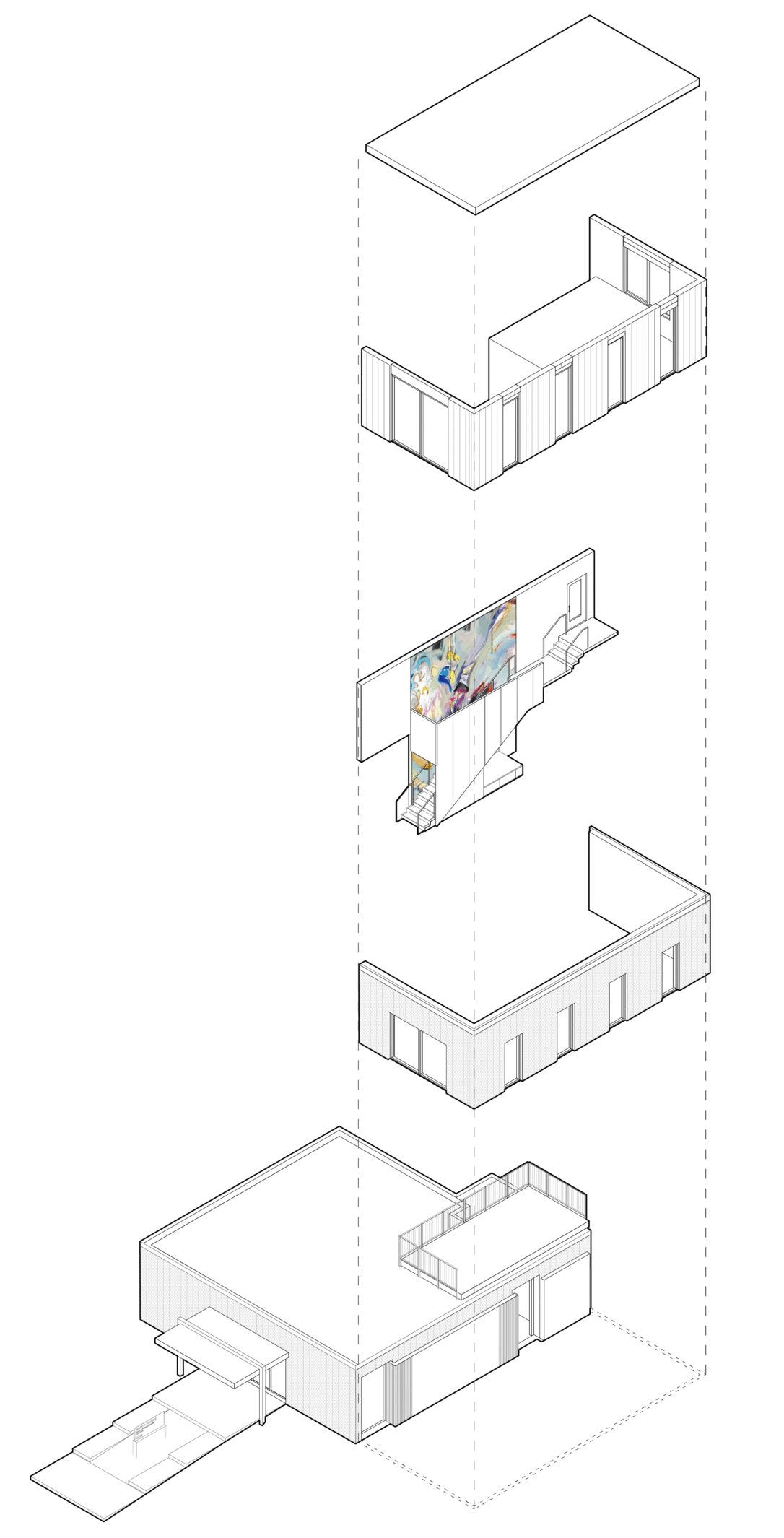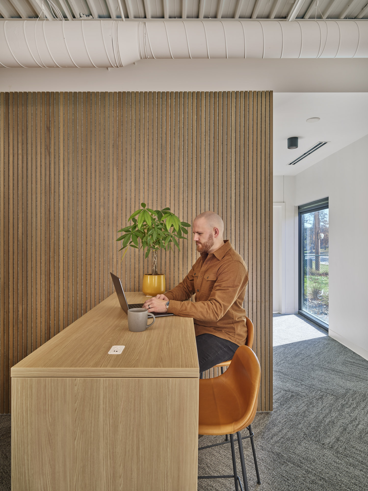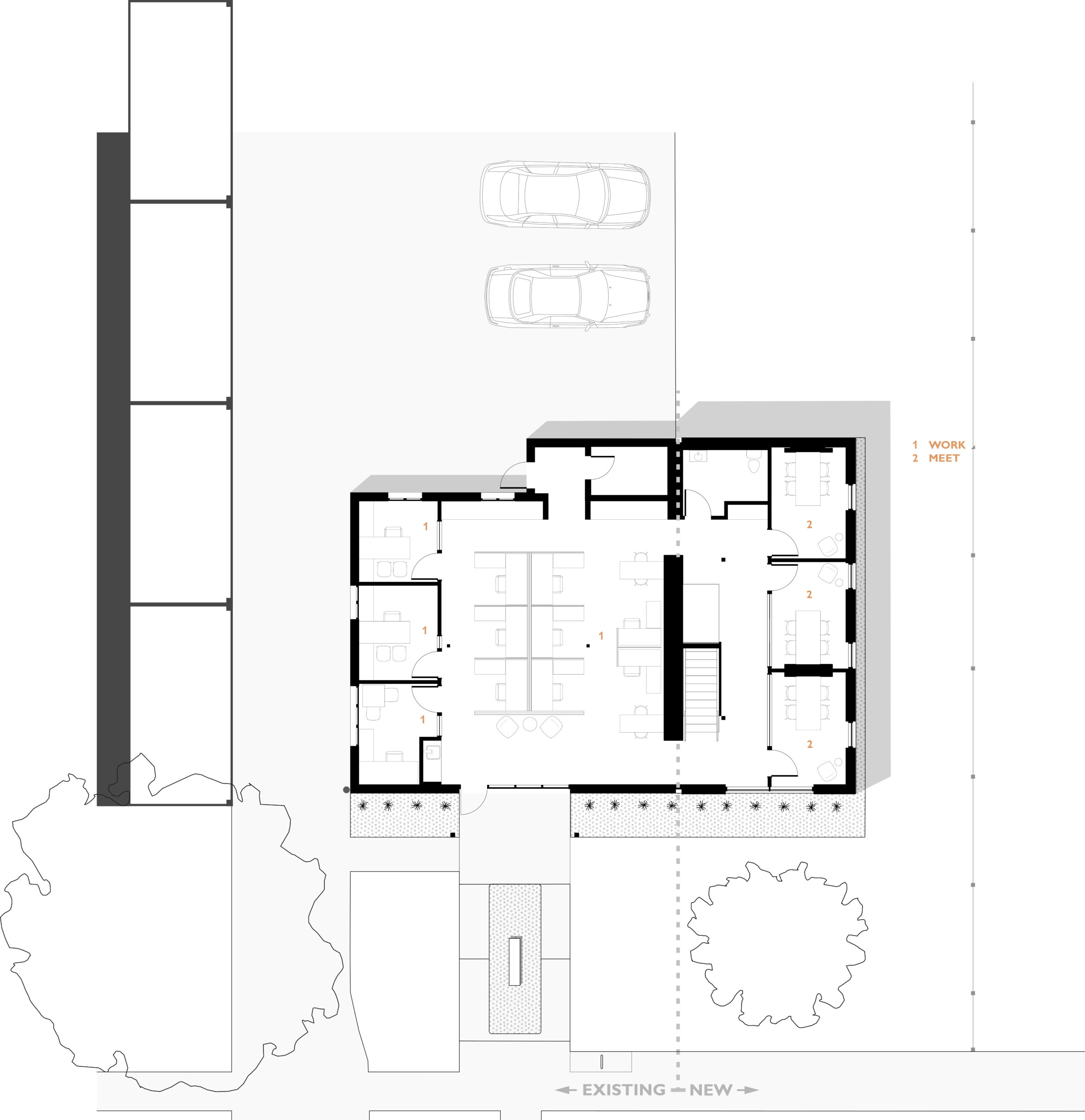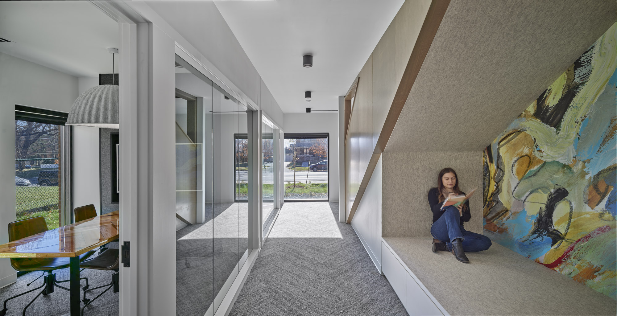 Located in a historic district of Des Moines, Iowa, this thoughtfully restored and expanded office building blends architectural preservation with contemporary workplace design. Originally a single-story masonry structure, the building underwent a full renovation and a 1,600-square-foot two-story addition to support a woman-owned financial planning firm. The original building now houses the main entrance, open work areas, and private offices, while the addition includes client meeting rooms, an upper-level suite, a breakroom, and a rooftop patio. A new staircase with a two-story art installation by local artist Sarah Grant connects the levels. The addition complements the historic structure through carefully matched materials and detailing, while a distinct metal “zipper” marks the transition between old and new. The result is a cohesive, light-filled, and functional environment that respects the building’s heritage while serving the needs of a modern business.
